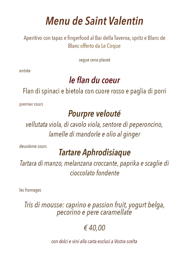 In anteprima Il menu della Taverna di Le Cirque per SAN VALENTINO